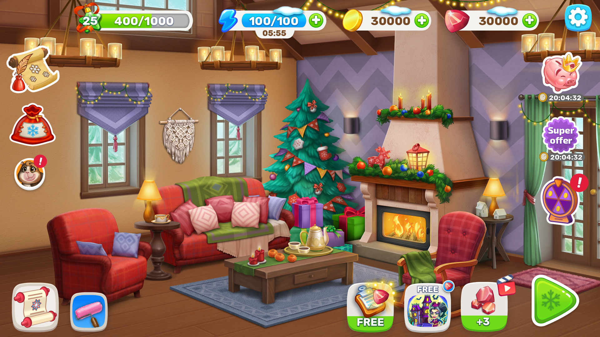 Merge & Design - это увлекательная игра, где переплелись новогодняя история, загадки от Санты и возможность украшать, строить и декорировать комнаты! Уютный дом, праздничная ёлка, загадочный персонаж, интересная история и красивый декор - все это уже ждет тебя в новой бесплатной игре Merge Christmas: Дизайн Дома!